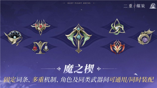 二游的核心玩法之一是養(yǎng)成,養(yǎng)成則繞不開對(duì)隨機(jī)詞條的強(qiáng)化。市面上許多產(chǎn)品都采用了隨機(jī)詞條拉長(zhǎng)玩家的養(yǎng)成周期,期間也勢(shì)必會(huì)浪費(fèi)玩家很多時(shí)間成本,這也是導(dǎo)致大家都覺得二游過肝或者正反饋不強(qiáng)的主要原因。為了區(qū)別于傳統(tǒng)二游里的同質(zhì)化養(yǎng)成套路,《二重螺旋》在養(yǎng)成玩法上做了減法,其核心養(yǎng)成系統(tǒng)——魔之楔,采用了固定詞條設(shè)計(jì),玩家強(qiáng)化升級(jí)再也不用賭詞條,所見即所得。而且不同角色、武器均可以配備同一套魔之楔,為玩家大大降低養(yǎng)成消耗的時(shí)間成本。