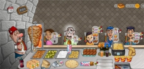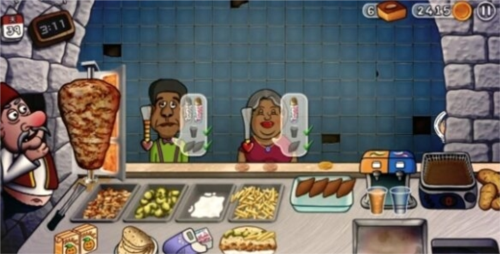 游戲的趣味在于日常制作沙威瑪?shù)男〔迩?,為了避免一直制作沙威瑪?shù)姆ξ?,還會有顧客“搗亂”,如乞丐和小偷。其中乞丐會拿到沙威瑪不給錢,這時候就需要我們去“痛擊”他,不讓他吃霸王餐。
