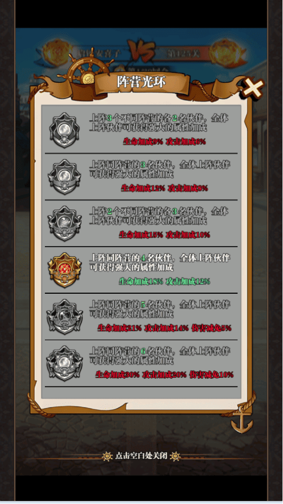 玩家需巧妙構(gòu)建戰(zhàn)斗陣容,依據(jù)不同戰(zhàn)局靈活調(diào)配角色,憑借策略與絕技征服對(duì)手,享受燒腦且激爽的戰(zhàn)斗快感。隊(duì)伍中可以編入6名角色,角色有4種陣營(yíng)和4種定位。陣營(yíng)分為世界政府、新星團(tuán)、大海賊、海軍和五皇;定位分為輔助、肉盾、輸出、控制。陣營(yíng)之間沒(méi)有克制效果,會(huì)根據(jù)上陣中同陣營(yíng)的英雄數(shù)量獲得傳說(shuō)之力的加成。戰(zhàn)斗的攻擊順序是根據(jù)在布陣的站位1-6號(hào)進(jìn)行,雙方一號(hào)角色會(huì)優(yōu)先行動(dòng)以此類(lèi)推,可以根據(jù)你隊(duì)伍中6名角色的定位設(shè)置合理的排陣出手順序。