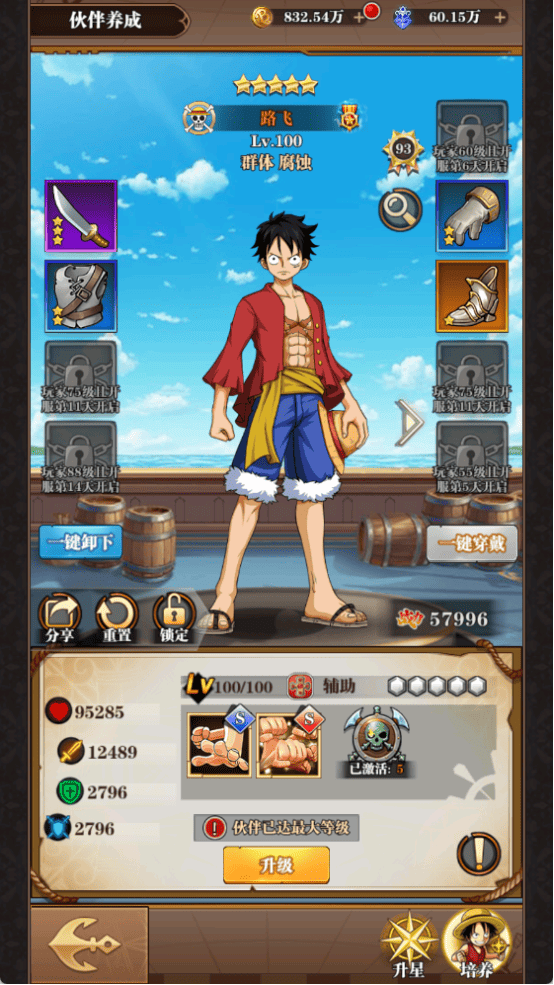 在卡牌的培養(yǎng)過(guò)程中,主要消耗的資源包括【英雄經(jīng)驗(yàn)】和【貝利】。通過(guò)不斷地使用這些資源,卡牌角色的等級(jí)會(huì)逐漸提升,從而獲得更強(qiáng)的屬性和技能效果。當(dāng)卡牌角色達(dá)到一定等級(jí)后,單純的經(jīng)驗(yàn)積累已不足以支撐其進(jìn)一步成長(zhǎng)。此時(shí),需要借助【突破石】來(lái)進(jìn)行升星。當(dāng)角色到一定等級(jí)后還會(huì)開(kāi)放專(zhuān)屬穿戴等功能強(qiáng)化英雄。